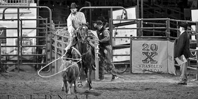 Three riders and their horses work the cattle indicated by the judge by their number-tags, into a pen in the arena. This is a timed event that requires teamwork, cow sense of the horse, cow-feeling by the cowboys and sometimes some luck in regards to the position of the cows to be isolated and driven into the pen.